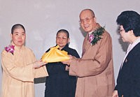 圖/民國八十三年(一九九四),花蓮縣佛教會第五屆理事長交接典禮,從前任理事長手中接過印信。