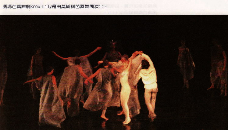 舞臺不大,佈景是抽象的,芭蕾舞員只有二十位,比我要求的二十五位少了些,可是他們男女舞蹈家都跳得很好,物也編得 很好,馬丁以他在北京曾任芭蕾舞團指導的身份,對俄人的編舞與跳演,都有好評,認爲不愧是一流的舞團,服裝設計也很清雅脫俗。美中不足是他們把我的原有故 事更改了很多。減刪了音樂與時間,而且把主戲放在男主角身上,女主角跳雪蓮仙子反而戲少了,男女舞星氣質都很文雅,跳的是古典芭蕾步法與動作,配角群舞則 有時是古典,有時是現代舞,倒也配合得天衣無縫,我覺得很滿意。