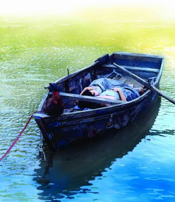 幸福地依偎著的夢中人,被湧進船艙的水給浸醒了。