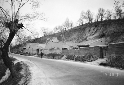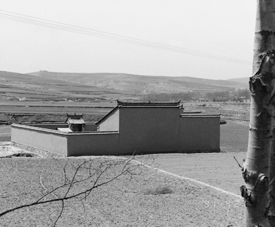 經過定西縣一個山坳中的三叉路口時,駕駛司機拿不定主意,究竟要走路況差的捷徑,或者繞道而行多走三十公里的柏油路?再次停車,等待後面的一輛來共同商量,就在那兒,有一民家的旁邊,開著小型的食店。店內的年輕入,未請我到店裡坐,店外民家前正在篩麥子看孫子的老婦人,卻一定要我到她家裡去坐。當我進入她家的院中,雖然非常窄小,布置倒蠻整潔,在荒涼的山村,竟然還有幾盆花。又讓我欣賞了「房子一邊蓋」的內部景觀。