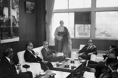 說到野村博士,他是我碩士課程時代的立大佛教學部部長,曾為我在臺灣商務印書館出版的《中國佛教史概說》寫過一篇序,他的博士論文是〈周武法難之研究〉。他不像坂本先生或已故的布施浩岳博士那樣地遇到中國古典佛書難解或有疑問之處,就來徵求中國留學生的意見。事實上他對他所講授的《唐高僧傳》,幾乎已熟到能夠倒背的程度,他不會遇到疑問,同時可能也不以為中國留學生能知道甚至連他也不太清楚的問題。然在經過不斷接觸之後,他雖列名為我的論文的副審之一,實際上他在對於我的這項學位的完成而言,乃是助力最大、費心最多的一位恩師了。日本的大學院,也就是碩士及博士班的學生與教授之間的真正被承認有師生或師弟關係者,僅為論文的指導者和被指導者的關係,所以,我和坂本、金倉、野村三位博士的師生關係,至少是同樣的了。我之得到這三位先生的愛護與照顧,以客觀的立場而言,是當然之事,以我受恩的立場而言,則不能不說是由於中國僧侶這個身分的福被,也是由於他們三位先生的慈悲所致了。
