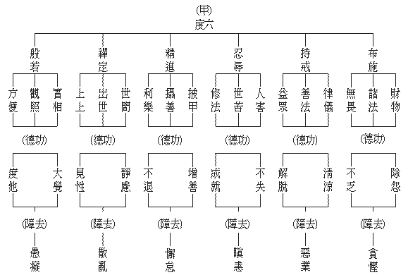 六、般若度梵語般若,或翻智慧。謂通達諸法之智,及斷惑證理之慧。但以智慧輕薄,不能稱合般若深重,故通常不翻,此名生善不翻。這是修行最終目的,故列在後。
