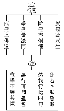 此四大綱要,即名四弘誓願。弘指大心普遍,誓指自制其心,願則志求滿足。這是一切菩薩想要圓滿佛道,必發的通願。