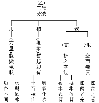 須知,佛陀說法,契機施度,或說體(如云「真如平等,無生無滅,不增不減,畢竟常恒」),或說相(如云「大智大悲,常樂我淨,無量功德」)或說用(如雲「內潛源底薰妄心,外現報化教眾生,生一切世間出世間善因果」)。學者於此應當分別清楚,若於說相誤為本體,或於說用誤為現象則恐失之毫釐,謬以千里矣。