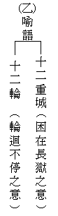 所以,十二因緣又名「十二重城」,五句章句經云:一切眾生常在長獄,有十二重城圍之。又名「十二輪」,輔行云:猶如車輪,輾轉不窮。此眾生所以不停輪迴生死。